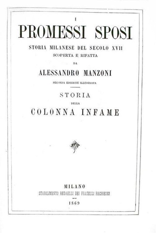 I promessi sposi. Storia milanese del secolo xvii scoperta e rifatta. Seconda edizione illustrata. Storia della colonna infame. Milano, Stabilimento Redaelli dei fratelli Richiedei, 1869