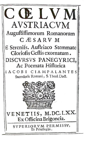 € 1000Coelum austriacum augustissimorum romanorum caesarum e sereniss. Austriaco stemmate gloriosis gestis exornatum. Discursus panegyrici, ac poemata historica. Venetiis, ex officina Brigoncia, 1670