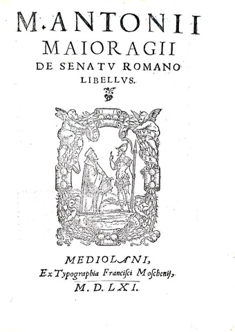 vendutoDe senatu romano libellus. Mediolani, ex Typographia Francisci Moschenij, 1561
