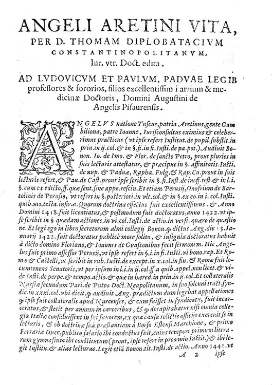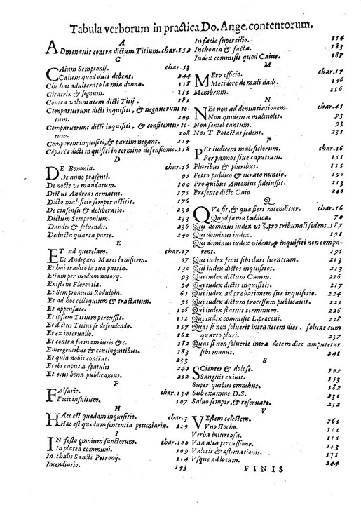 De maleficiis tractatus, de inquirendis animaduertendisque criminibus. Opus ... cui tractatus Alberti de Gandino, nec non Bonifacii de Vitalinis, una cum apostillis Augustini de Arimino, et Hier. Cuchalon... Cum eiusdem Angeli vita, per Thomam Diplobatacium edita. Venetiis, apud Societatem Minimam, 1598.