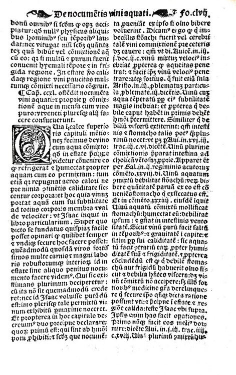 Cm. 16,5, cc. (8) cxcviii (1) + 1 carta bianca. Splendido frontespizio figurato con dati tipografici e giglio giuntino impressi nitidamente in rosso entro cornice architettonica; numerosi e bellissimi capilettera xilografici. Testo su due colonne in caratteri semi-gotici. Legatura strettamente coeva in piena pergamena floscia con piccole unghie e titoli manoscritti al dorso. Alcune piccole mancanze di pergamena a dorso e unghie, con macchiette al piatto posteriore. Lievi, sporadiche e fisiologiche bruniture dovute alla qualità della carta lionese usata al tempo. Abrasione di pochi mm. nella parte alta delle carte 53 e 54. Esemplare genuino e, data l'alta epoca, complessivamente ben conservato. Rara edizione giuntina (verosimilmente la quinta) della principale opera del medico padovano Antonio Gazio (1461 - 1528). Questo interessantissimo trattato, pubblicato per la prima volta nel 1491 con il diverso titolo “ De conservatione sanitatis”, delinea una guida per una vita sana che ben esemplifica l'ideale rinascimentale di benessere. L'incipit è dedicato alle capacità e qualità che deve avere un buon medico; seguono capitoli dedicati a sonno, scelta dell'abitazione, rapporti sessuali, igiene personale, esercizio fisico, malattie e farmaci curativi. I capitoli dal 42 al 63 sono dedicati all'alimentazione e approfondiscono argomenti quali: scelta dei cibi, produzione del pane, proprietà diuretiche della birra, natura e proprietà nutritive di carne, latte, formaggio, pesce e verdure. Viene infine ampiamente trattata la produzione del vino e ne vengono illustrate caretteristiche qualitative e proprietà (cfr. (Simon, Bibl. Bacchica, 283). Cfr. Iccu; Baudrier VI, 194; Durling, p. 245; non in Vicaire e Oberlé.