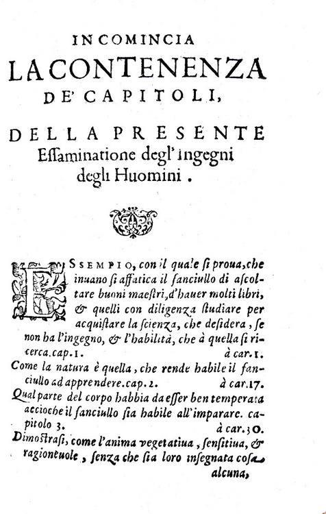 Pedagogia e psicologia nel Cinquecento: Juan Huarte - Essaminatione de gl'ingegni degli huomini 1600
