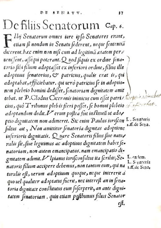De senatu romano libellus. Mediolani, ex Typographia Francisci Moschenij, 1561.