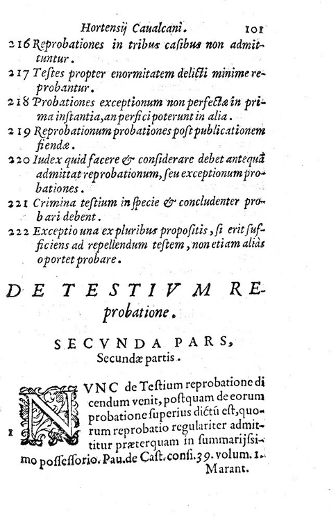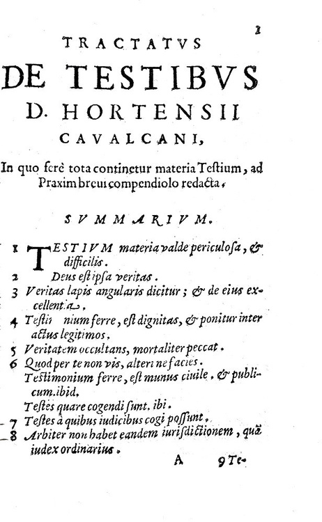 La prova per testimoni nel '500: Ortensio Cavalcani - Tractatus de testibus - 1590 (prima edizione)