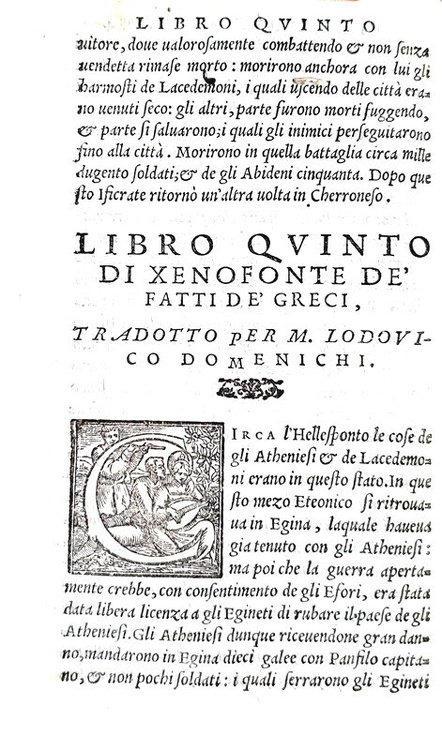 I fatti de i greci di Xenophonte. Tradotto per messer Lodovico Domenichi. In Vinegia, appresso Gabriel Giolito de' Ferrari, 1548.