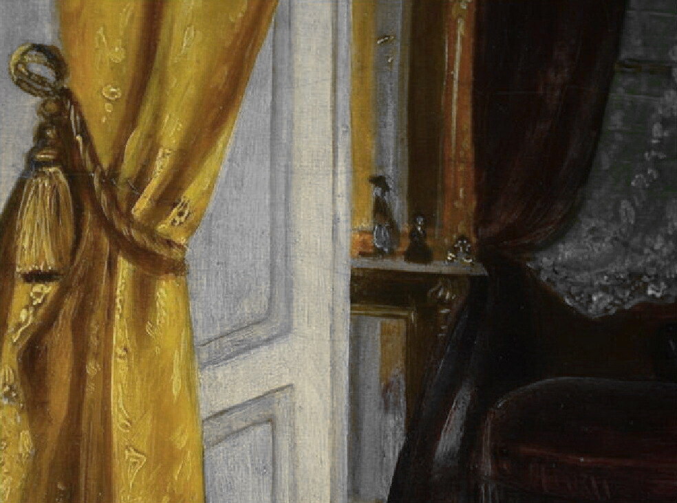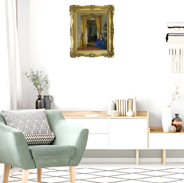Cm. 38,5 cm x 30,5 (cm. 52,5 x 44,5 con bellissima cornice strettamente coeva, o forse addirittura anteriore, lavorata in foglia oro). Firmato e datato “Russ 71” in basso a sinistra, due schede antiquarie applicate al retro. Opera ottimamente conservata e rintelata a mero scopo preventivo. Certificato di autenticità della galleria viennese di provenienza. Franz Russ il Giovane (1844-1906), nativo di Vienna, fu figlio di Franz Russ il Vecchio (1817-1892) e fratello maggiore di Robert Russ (1847-1922), entrambi pittori molto affermati. L'artista si formò nell'Accademia di Vienna e fu allievo di Christian Ruben; dopo aver trascorso alcuni anni a Parigi rientrò in Austria e si specializzò nei ritratti e nelle scene di genere. Sue opere sono conservate al Museo di Vienna, al Museo di San Gallo e al Museo Lumomirski di Lemberg. Questo suggestivo e iconico dipinto è dedicato a una lettrice dell'alta società viennese del tempo. L'impianto pittorico, che in apparenza concede spazio prevalente agli sfarzosi dettagli dell'interno di un palazzo nobiliare, in realtà si riduce alla figura della lettrice che diventa dominante, immersa e quasi assorta nella lettura del libro. Per ulteriori note biografiche si veda Benezit, Dictionnaire des peintres, rist.anast., Librairie Grund, 1966, volume VII, p. 437.