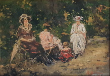 Raffaele Ragione - Dame in lettura al Parc Monceau - 1910 circa (olio su tela)