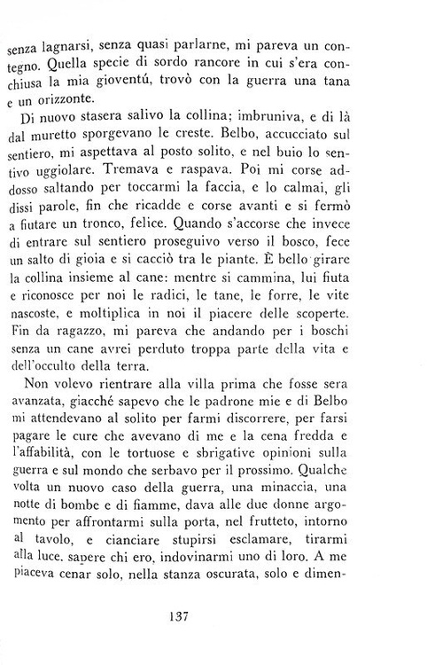 Cm. 19,5, pp. 311 (5) . Legatura editoriale in cartoncino illustrato (dipinto di Henri Matisse) ai piatti e tela al dorso. Dorso in tela leggermente scurito. Patina/brunitura del tempo limitata alle estremità delle pagine dovuta alla bassa qualità della carta usata nel periodo post-bellico. Nel complesso esemplare in buono stato di conservazione. Contiene per la prima volta Il carcere e La casa in collina ovvero i due romanzi brevi che sancirono la maturità letteraria di Cesare Pavese. “Diversi per intensità della narrazione, ma analoghi per comunanza d'esperienza umana, ne Il carcere Pavese segue la vita di un confinato politico, Stefano, in un paesucolo del Mezzogiorno. Ne La casa in collina le vicende personali di Corrado si intrecciano inesorabilmente ai drammatici eventi storici di Torino bombardata, la resistenza operaia, i partigiani, i fascisti. Mai come in queste pagine la tormentata riflessione intellettuale di Pavese si unisce a una lucida analisi dei personaggi e dei luoghi, in un confronto serrato tra la solitudine, il ripiegamento interiore e l'urgenza del mondo: il tentativo, tutto pavesiano, di una conciliazione profonda e sofferta tra il mito e la storia” [dalla recensione della casa editrice]. Prima edizione. Collana I Coralli, nr. 34. Cfr. Iccu; Gambetti Vezzosi,Rarità bibliografiche del Novecento italiano, pp. 660: “piuttosto ricercato”.
