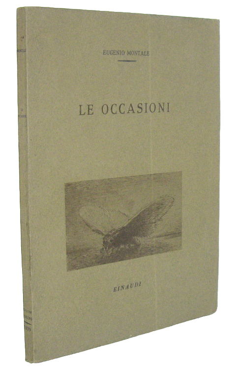 Cm. 22, pp. 105 (3). Brossura editoriale con incisione di Francesco Menzio raffigurante una farfalla. Minimi segni del tempo alla brossura. Qualche trascurabile e sporadica fioritura. Esemplare nel complesso fresco e ben conservato. Seconda raccolta poetica di Eugenio Montale in cui viene pubblicato tutto il composto dal 1928, data della seconda edizione aumentata degli «Ossi di seppia», al 1939, comprese le poesie edite in tiratura limitatissima nel 1932 come «La casa dei doganieri». L'opera è considerata tra le più significative produzioni liriche europee del Novecento, in cui ancora più forte è, rispetto agli "Ossi di seppia", il ricorso all'analogismo, mediato soprattutto attraverso T. S. Eliot. Rara e ricercata prima edizione in tiratura limitata di 1000 esemplari non numerati. Cfr. Iccu; Barile, Bibliografia montaliana, n. 33; Gambetti-Vezzosi, Rarità bibliografiche del Novecento italiano, p. 550: “Edizione molto ricercata e preziosa”.