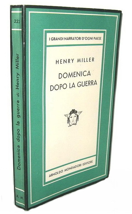 Cm. 19,5, pp. (8) 234 (6). Brossura editoriale. Trascurabili segni del tempo. Esemplare nel complesso fresco e ben conservato. Non comune prima edizione italiana, con la traduzione curata da Giorgio Monicelli, di "Sunday after the War", raccolta di quattro racconti del grande scrittore newyorkese Henry Miller (1891-1980). Precede l'opera il saggio di Orwell intitolato "Nel ventre della balena" (pp. 7-57). «Questo “Domenica dopo la guerra” contiene quattro lunghi racconti i quali hanno un comune tessuto connettivo, un tema che li collega: la denuncia in termini aspri e duri della moderna civiltà americana. Sia che l'autore narri di un viaggio in Inghilterra, sia che tratti del ritorno in famiglia dopo anni di vagabondaggio o ci rappresenti con un linguaggio surrealista un sogno, o come nel quarto, "Buone notizie: Dio è amore" uno dei brani più efficaci denunci le misere condizioni della quotidiana vita d'America, Miller, vive coi suoi personaggi, personaggio lui stesso, significativo e tipico interprete di questa nostra età disillusa e sfrenata» (dal risvolto di copertina). Collana Medusa, vol. 22. Cfr. Iccu.