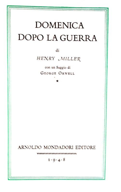 Henry Miller - Domenica dopo la guerra. Con un saggio di Orwell - 1948 (prima edizione italiana)