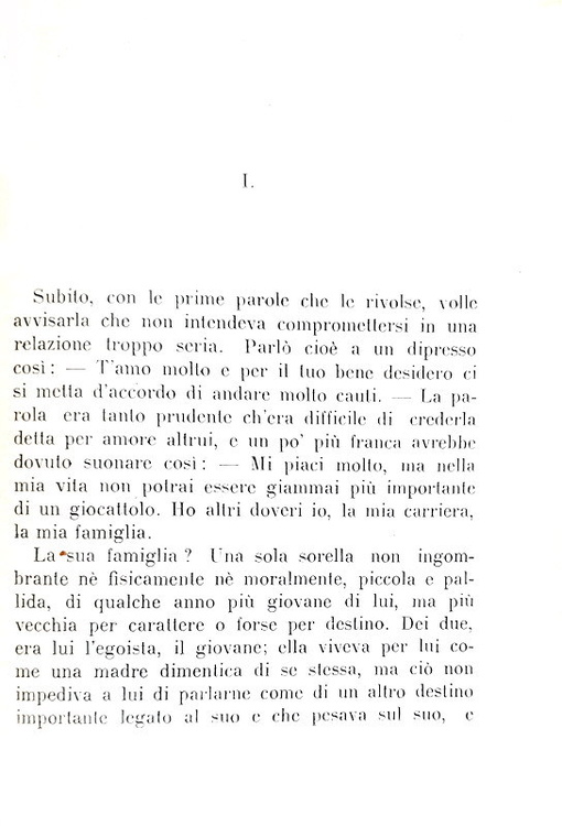 Cm. 19,5, pp. 289 (3). Brossura editoriale. Minime mende e macchiette limitate alla brossura. Ordinaria patina del tempo alle pagine. Nel complesso buon esemplare. Il secondo romanzo di Italo Svevo pubblicato a Trieste nel 1898. Il protagonista del romanzo è Emilio Brentani, un uomo inetto e lacerato tra la brama di amore e piacere e il rimpianto per non averli goduti. Svevo affronta il problema dell'inettitudine, dell'incapacità da parte del protagonista di gestire la propria vita interiore e sentimentale. Seconda edizione con varianti e con una nuova prefazione stampata, come la prima, parzialmente a spese dell'Autore, dopo i rifiuti di Mondadori, Treves e Cappelli.Cfr. Gambetti-Vezzosi, Rarità bibliografiche del Novecento italiano, p. 898: “piuttosto ricercato”; Iccu.
