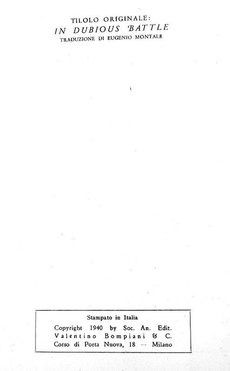John Steinbeck - La battaglia (traduzione Eugenio Montale) - Bompiani 1940 (prima edizione italiana)