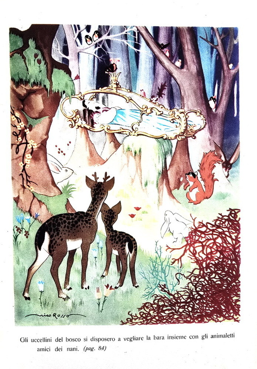 La storia di Biancaneve, i sette nani e la figlia di Biancaneve nella nuova originale versione di Francesca Lessona e di Marcello Arneodo. Illustrazioni a colori del pittore Nico Rosso. Torino, Casa editrice Arneodo cav. Marcello, 1945 (26 Ottobre).