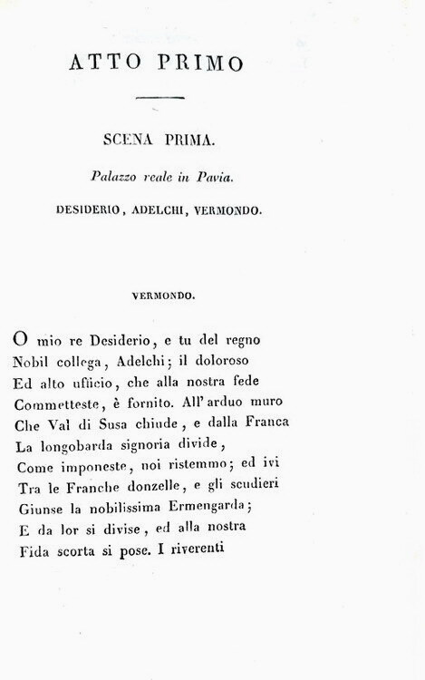 Adelchi. Tragedia. Con un discorso sur alcuni punti della storia longobardica in Italia. Milano, per Vincenzo Ferrario, 1822.