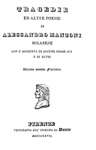 Tragedie ed altre poesie con l' aggiunta di alcune prose sue e di altri. Edizione seconda fiorentina. Firenze, Tipografia all'Insegna di Dante, 1827.