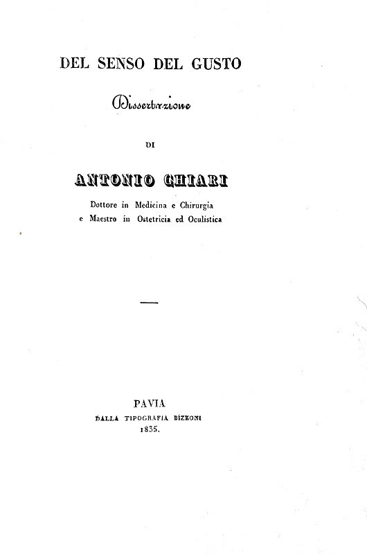 Antonio Chiari - Del senso del gusto. Dissertazione - Pavia 1835 (rarissima prima e unica edizione)