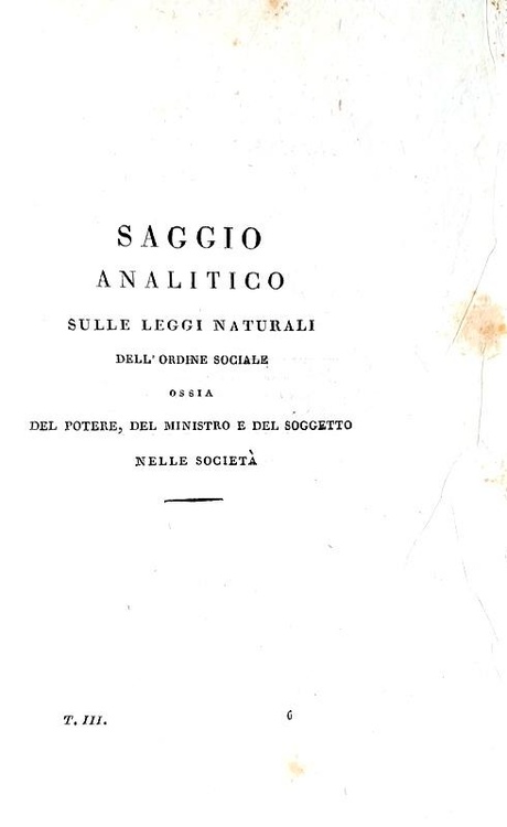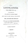 La legislazione primitiva considerata in questi ultimi tempi coi soli lumi della ragione. Modena, per G. Vincenzi e Comp., 1818.