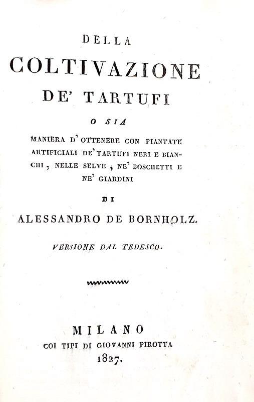 Della coltivazione de' tartufi o sia maniera d'ottenere con piantate artificiali de' tartufi neri e bianchi, nelle selve, ne' boschetti e ne' giardini. Milano, coi tipi di Giovanni Pirotta, 1827.