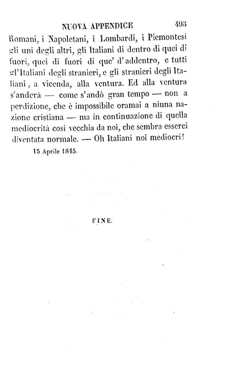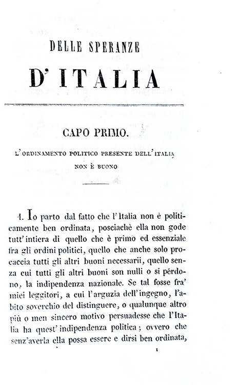 Delle Speranze d'Italia. Capolago, Tipografia Elvetica, 1845.