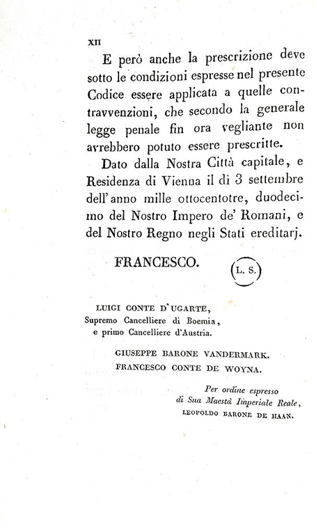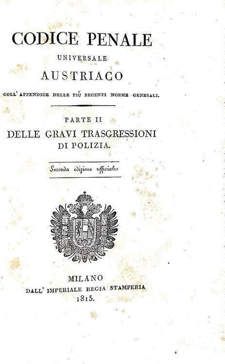 Codice penale universale austriaco. Seconda edizione ufficiale - Milano, Stamperia Regia 1815