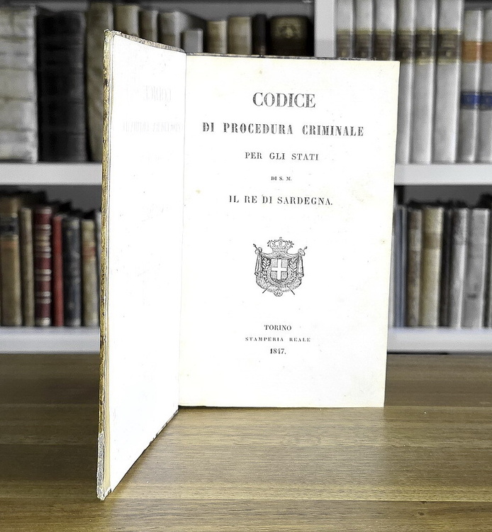 Cm. 20, pp. (8) 263 (1). Legatura strettamente coeva in mezza pelle con titoli e filetti in oro, nonché fregi impressi a secco al dorso. Sporadiche e lievi fioriture. Esemplare nel complesso ben conservato. Il Codice di procedura criminale emanato da Carlo Alberto di Savoia nel 1847, ha rappresentato un passo fondamentale nel riordino legislativo del Regno sabaudo, introducendo un sistema più organico e moderno, seppur ancora influenzato dai modelli francesi e dalle precedenti leggi sabaude. Il Codice si inserisce nella vasta opera di codificazione (Codice penale del 1839, Codice civile del 1837, ecc.) per modernizzare lo Stato, un periodo di transizione che porterà altresì alla promulgazione dello Statuto Albertino nel 1848. Rara e ricercata prima edizione. Cfr. Iccu; Ciasca, 3955.