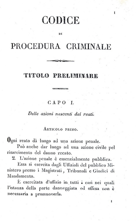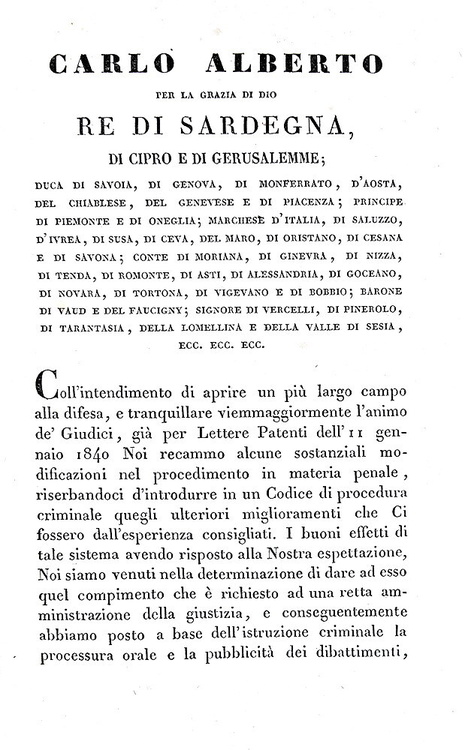 Codice di procedura criminale per gli stati di s.m. il re di Sardegna. Torino, Stamperia reale, 1847.