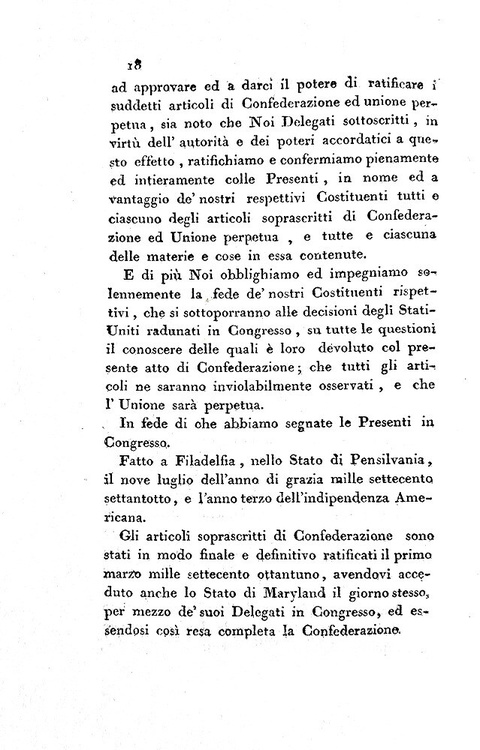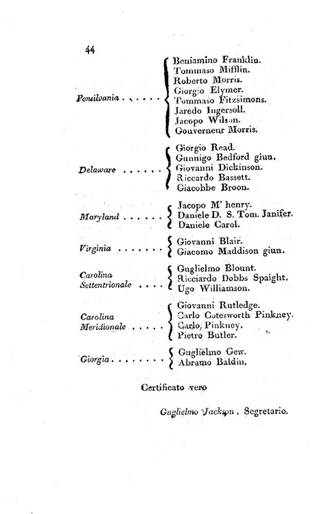 Costituzione degli Stati Uniti d'America preceduta dalla loro confederazione. Milano, presso Sonzogno e compagni, 1814.