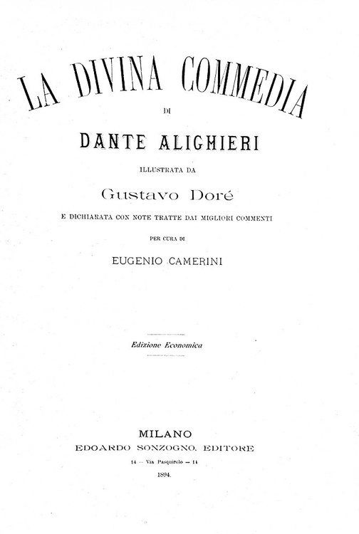 e dichiarata con note tratte dai migliori commenti per cura di Eugenio Camerini. Milano, Edoardo Sonzogno editore, 1894.