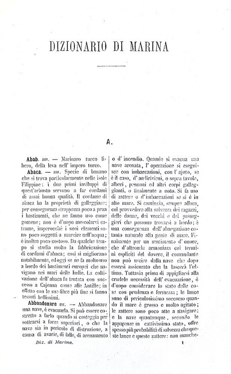 Dizionario di marina. Milano, Natale Battezzati editore, 1879.