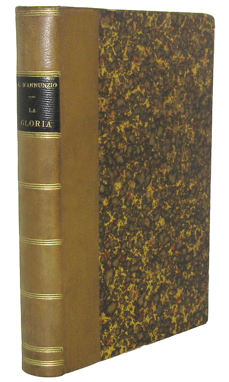 Cm. 18,5, pp. (10) 237 (3). Bella legatura coeva in mezza pelle con titoli su tassello e filetti dorati al dorso; carta marmorizzata a piatti e sguardie. Segnacolo in seta verde. Trascurabile e naturale patina del tempo limitata alle estremità delle pagine. Esemplare ben conservato stampata su carta pregiata. Tragedia in cinque atti in prosa rappresentata nel 1899 da Eleonora Duse ed Ermete Zacconi (Napoli, Teatro Mercadante, 27 aprile 1899) e pubblicata nello stesso anno. «Vorrebbe essere un'altra glorificazione del Superuomo, ma anche qui, come nella "Gioconda", è semmai la glorificazione della Superfemmina: amplificazione torbida ed enfatica dell'invincibile potere della femmina sull'uomo avvinto come una nuova Ippolita del "Trionfo della morte" e Pantea del "Sogno d'un tramonto d'autunno"; soltanto resa ancor piu' torbida perche' rappresenta il sesso, e insieme la Gloria, il delirante Potere. La tragedia mette in scena un eroe, Ruggero Fiamma, che combatte per la signoria di Roma contro un dominatore gia' vecchio, Cesare Bronte; al quale strappa infine il potere e, splendida amante, la Comnena; ma com'è in costei il suo pungolo e la sua forza, come in lei egli è tutto perduto senza nemmeno la possibilita' di liberarsi uccidendola, così è lei sola insaziabile di voluttà di dominio, pronta a favorire la morte del primo amante quando il suo astro declina, e poi a uccidere ella stessa Ruggero Fiamma e darne il cadavere in pasto alla folla ribelle quando nella medesima situazione egli non sa proporle se non l'amore e l'esilio» (Eurialo De Michelis, Diz. Bompiani, III, p. 681. Non comune e ricercata prima edizione senza indicazione di migliaio. Cfr. Biancardi-Francese, Prime edizioni italiane, p. 152; Gambetti-Vezzosi, Rarità bibliografiche del Novecento italiano, p. 251: “piuttosto ricercato”.