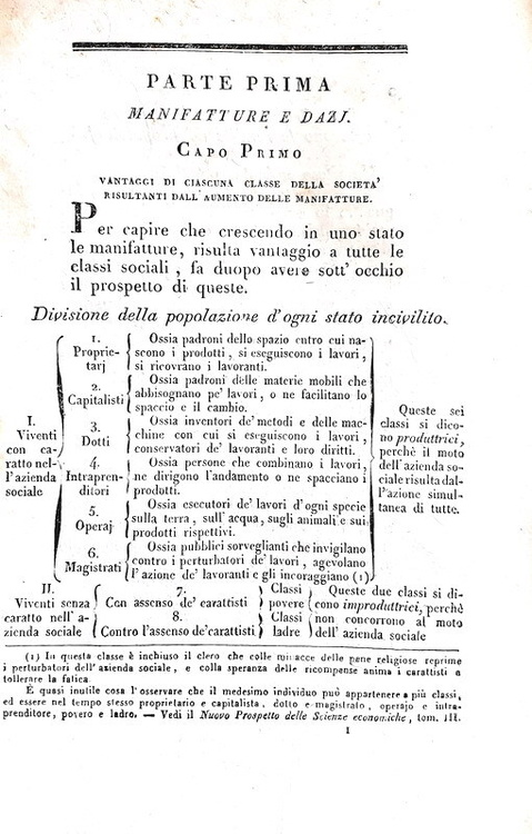 Sulle manifatture nazionali e tariffe daziarie. Discorso popolare di Melchiorre Gioja, autore del Nuovo prospetto delle scienze economiche. Milano, presso Gio. Pirotta stampatore-librajo, 1819.