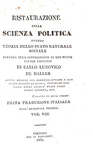 Karl Ludwig von Haller - Ristaurazione della scienza politica - 1827 (rara prima edizione italiana)
