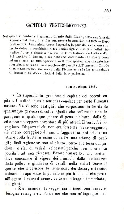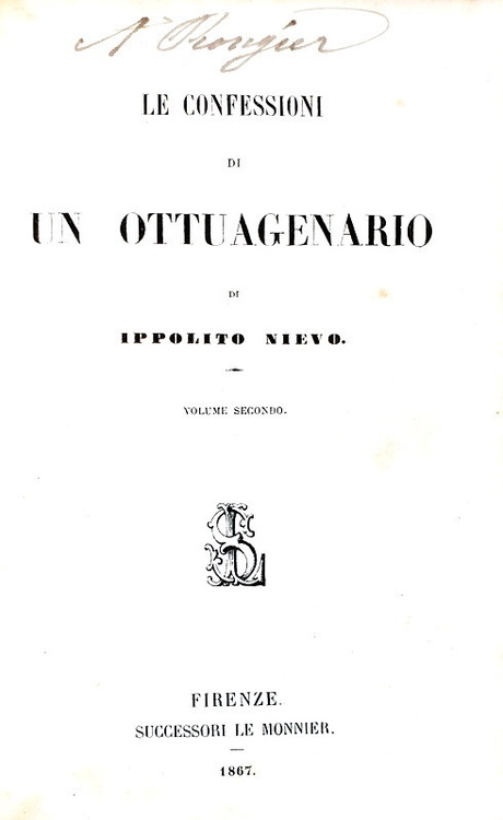Le confessioni di un ottuagenario [poi intitolato Le confessioni di un italiano]. Firenze, Le Monnier, 1867.