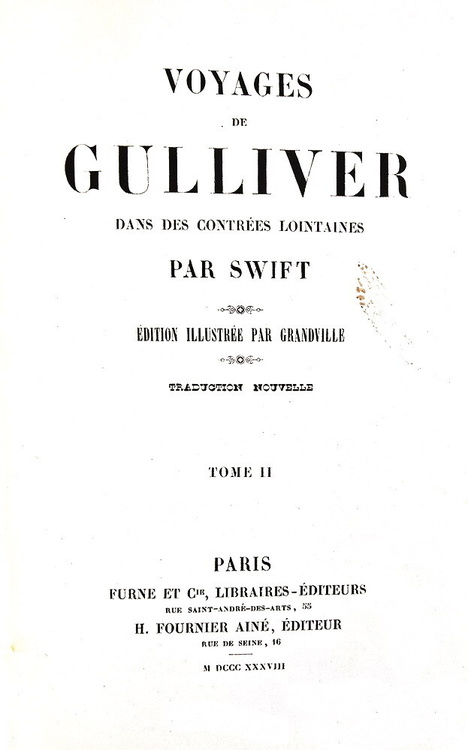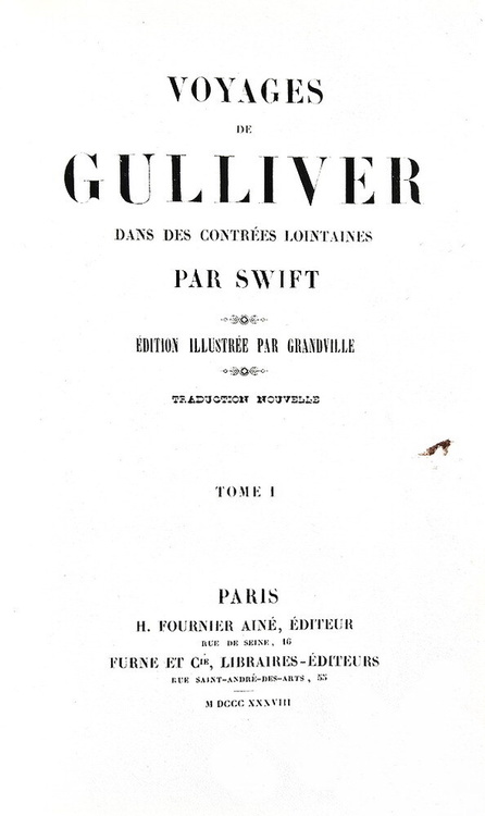 Voyages de Gulliver dans des contrées lointaines. Illustrée par Grandville. Paris, Furne et Cie & H. Fournier, 1838.