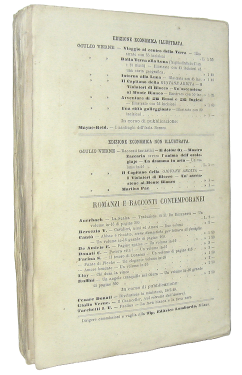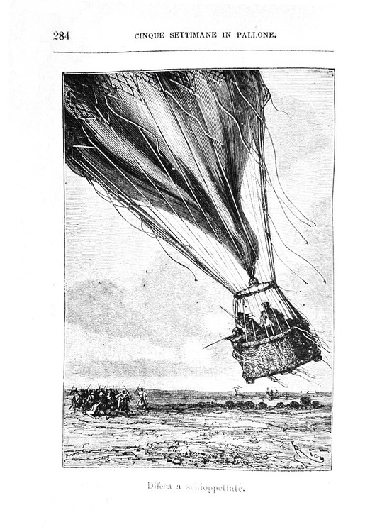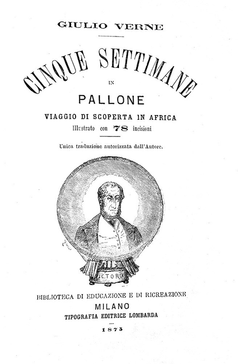 Cinque settimane in pallone. Viaggio di scoperte in Africa illustrato con 78 incisioni. Unica traduzione autorizzata dall'Autore. Milano, Tipografia Editrice Lombarda, 1875.