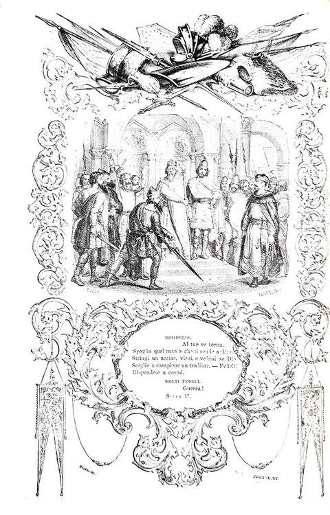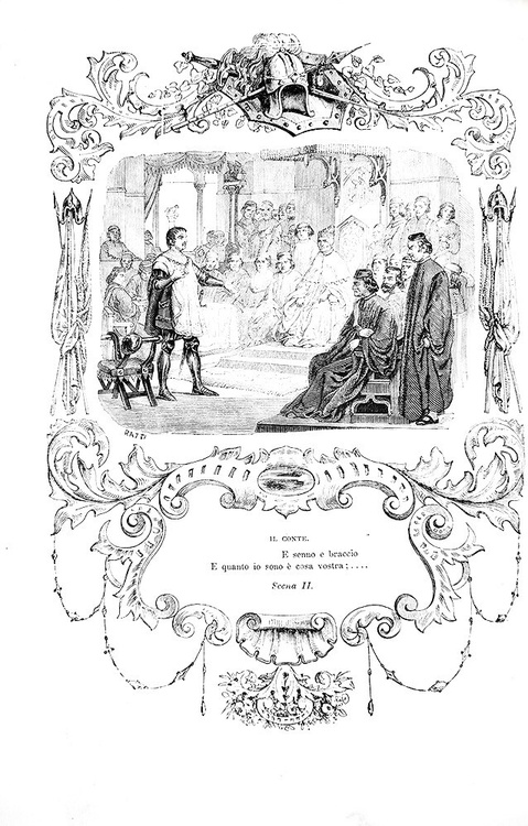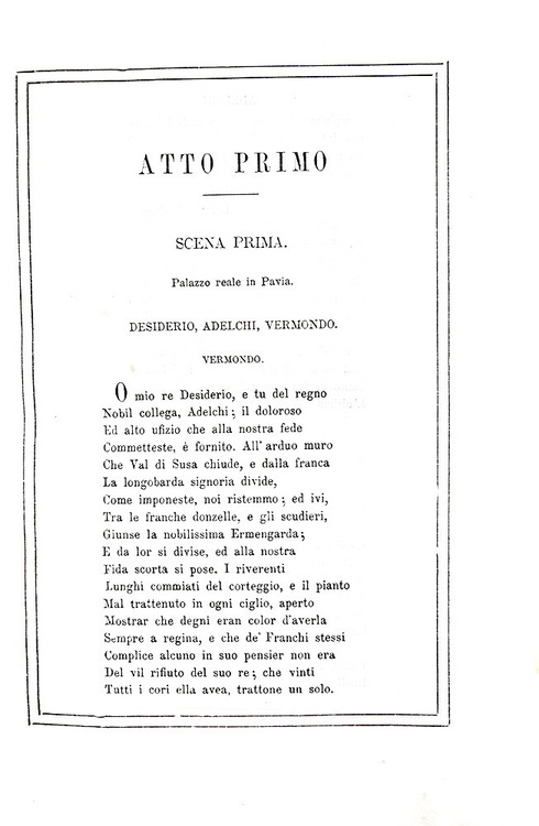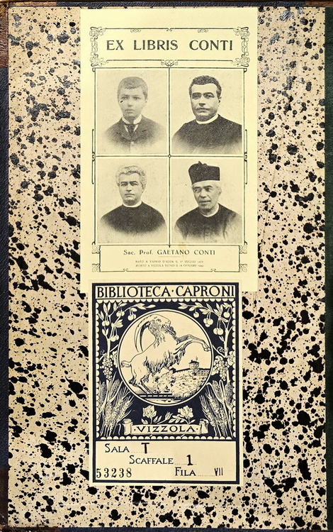 Cm. 25,5 pp. 955 (1). Con 10 splendide illustrazioni xilografiche incise da Ratti su disegni di Focosi, bellissime testatine e capilettera illustrano gli Inni sacri, testo inquadrato da duplice filetto. Elegante legatura coeva in mezza pelle con titoli e filetti in oro al dorso e punte, sempre in pelle. Piatti in tela con titoli e ampio fregio angolare in oro al piatto anteriore. Al contropiatto anteriore ex-libris “Biblioteca Caproni – Vizzola” (Federico Caproni fondatore insieme al fratello minore Giovanni Battista delle Industrie Aereonautiche Caproni, fu studioso di scienze agronomiche. Negli anni Trenta del 1900 acquistò un'ampia tenuta nei pressi di Vizzola Ticino e la biblioteca privata era costituita da circa 85.000 opere, divise per materia, che venne dispersa dagli eredi nel corso del tempo). Minimi segni del tempo alla legatura con una sottile fenditura di pochi cm. alla parte alta della cerniera posteriore, sporadiche e perlopiù lievi fioriture. Esemplare nel complesso genuino e in buono stato di conservazione. Ultima edizione con Manzoni in vita (nonché ultima da lui riveduta) delle sue ‘Opere varie', stampata per la prima volta nel 1845, sempre a Milano presso Redaelli. L'Autore rivisitò alcune parti delle prose ritenute non soddisfacenti. Include: Adelchi; Discorso sopra alcuni punti della storia longobardica in Italia; Il conte di Carmagnola; Lettre a M.C. sur l'unité de temps et de lieu dans la tragédie; Del romanzo storico e, in genere, de'componimenti misti di storia e d'invenzione; Dell'invenzione; Sulla lingua Italiana; Osservazioni sulla morale Cattolica; Inni sacri; Strofe; Il cinque Maggio. Questa edizione contiene altresì la Lettera sul Romanticismo, fino ad allora inedita. Cfr. Iccu; Vismara, 339; Salveraglio, 9. Parenti, I, pp. 239-246