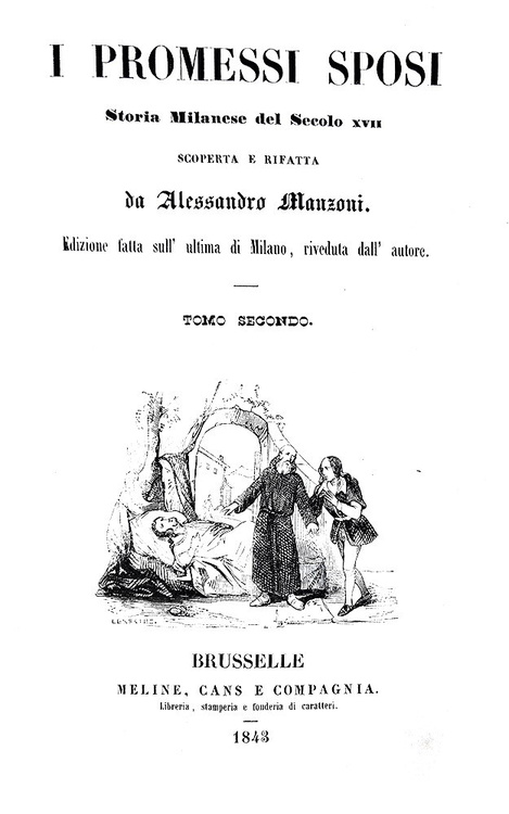 I promessi sposi. Storia milanese del secolo XVII, scoperta e rifatta. Edizione fatta sull'ultima di Milano, riveduta dall'Autore. Brusselle, Meline, Cans e Compagnia, 1843.