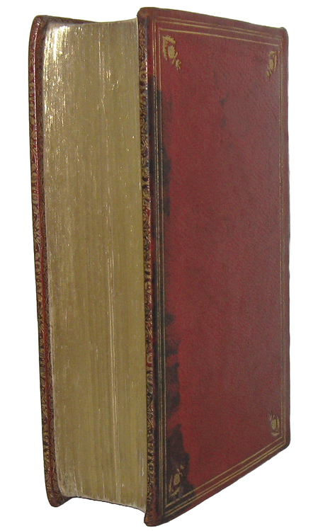 Due parti in un volume di cm. 15,5, pp. 452; 429 (1). Graziose vignette ai frontespizi e due belle testatine xilografiche narranti episodi del romanzo. Splendida legatura coeva in pieno marocchino rosso. Dorso a 5 nervi con titoli e ricchi fregi in oro agli scomparti, piatti inquadrati da triplice filetto dorato con piccoli fregi floreali agli angoli. Dentelles e tagli dorati. Annotazione e firma di possesso di mano coeva alla prima carta bianca. Macchia di inchiostro al piatto posteriore; sporadiche e trascurabili macchiette all'interno. Esemplare nel complesso ben conservato. Raffinata edizione dei Promessi sposi manzoniani stampata a Bruxelles dall'autorevole stampatore Méline che spesso editava opere di autori italiani. Il testo riprende quello della Quarantana milanese. Edizione rarissima, non censita nella Bibliografia manzoniana di Antonio Vismara. Iccu non segnala esemplari conservati nelle biblioteche pubbliche italiane.