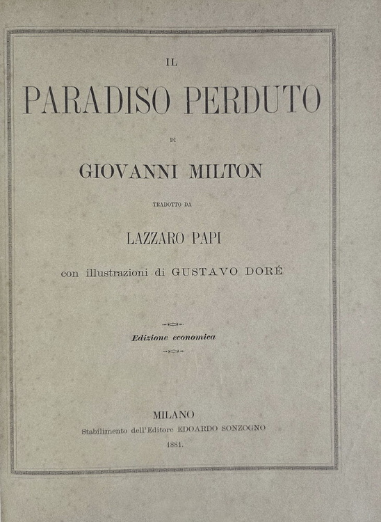Il paradiso perduto di Giovanni Milton tradotto da Lazzaro Papi con illustrazioni di Gustavo Doré. Milano, stabilimento dell'editore Edoardo Sonzogno, 1881.