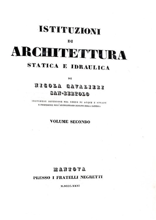 Istituzioni di architettura statica e idraulica. Mantova, presso i fratelli Negretti, 1831.