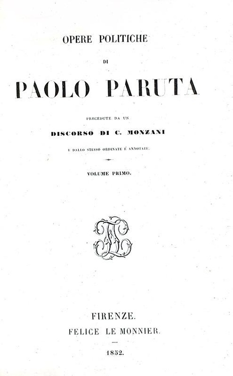 Un classico della politica cinquecentesca: Paolo Paruta - Opere politiche - 1852 (bella legatura)