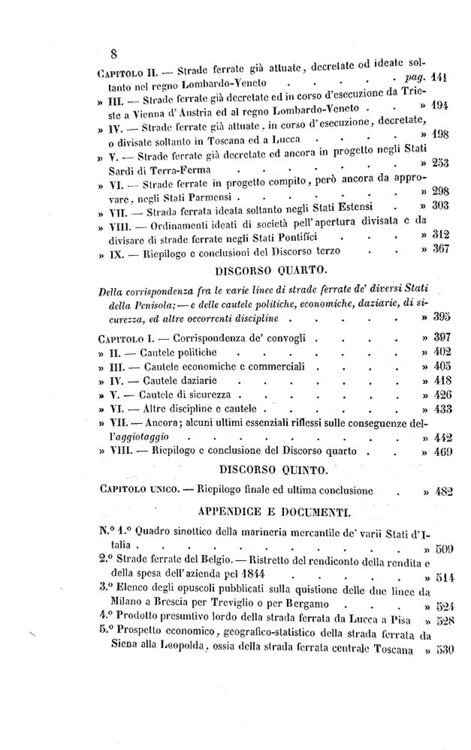 Delle strade ferrate italiane e del migliore ordinamento di esse. Cinque discorsi. Capolago, Tipografia e Libreria Elvetica, 1845.
