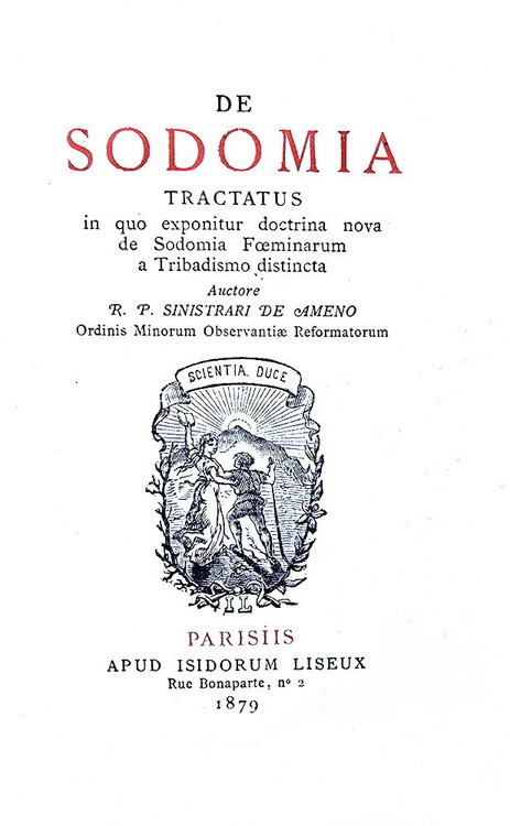 De sodomia tractatus in quo exponitur doctrina nova de sodomia foeminarum a tribadismo distincta. Parisiis, apud Isidorum Lisieux, 1879.