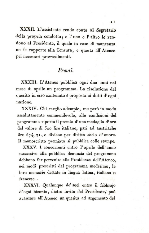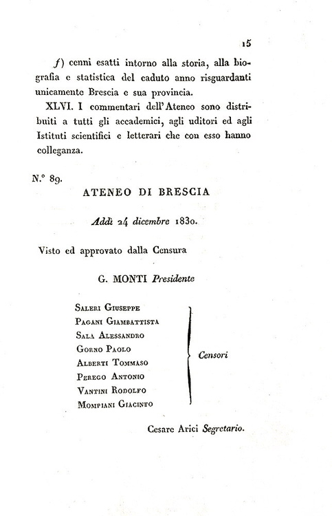 Statuto dell'Ateneo di Brescia. Brescia, per Niccolò Bettoni, 1831.