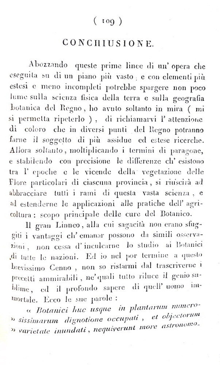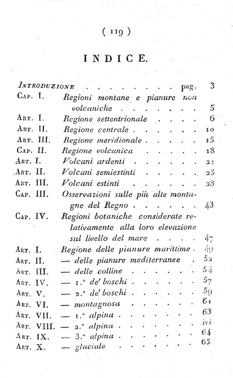 Cm. 19, pp. 121 (1). Con 2 grandi carte geografiche f.t. acquarellate a mano, più volte ripiegate (cm 35 x 50 circa): una è la carta del Regno di Napoli, l'altra è la carta geologica della Campania. Bella legatura strettamente coeva con titoli e ricchi fregi in oro al dorso; carta marmorizzata ai piatti. Trascurabili/sporadiche macchiette. Esemplare ottimamente conservato. Michele Tenore (1780 - 1861) fu professore di botanica e prefetto del Reale orto botanico di Napoli. Prese parte ai moti rivoluzionari della Repubblica partenopea del 1799 e il 15 maggio 1800 si laureò in medicina. Nel 1802 cominciò a effettuare alcune escursioni nei territori del Regno di Napoli studiando e illustrando la flora napoletana e quella delle regioni limitrofe. Svolse parallelamente una gran mole di ricerche di amplissimo respiro, documentate da una serrata serie di saggi come il presente “Cenno sulla geografia fisica e botanica del Regno di Napoli” (tradotto in francese come Essai sur la géographie physique et botanique du Royaume de Naples, Naples 1827). Gazie ai preziosi uffici del ministro dell'Interno francese André-François Miot, fu incaricato di effettuare escursioni nei territori del Regno al fine di incrementare le piante dell'orto; tale prassi fu negli anni successivi intensamente curata da Tenore, offrendo di quei viaggi resoconti vivaci e ricchi di annotazioni naturalistiche ma anche antropologiche. Rara e ricercata prima edizione. Cfr. Iccu.