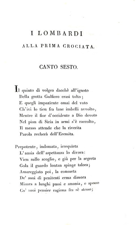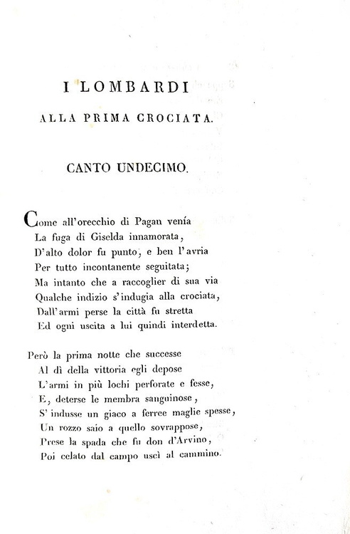 I lombardi alla prima crociata. Canti quindici. Milano, presso Vincenzo Ferrario, 1826.