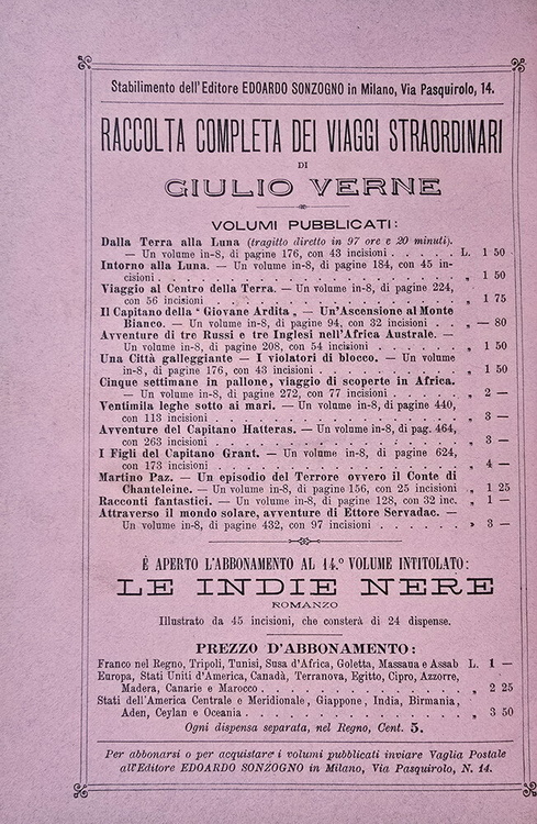 Attraverso il mondo solare. Avventure di Ettore Servadac. Milano, Edoardo Sonzogno editore, 1891.