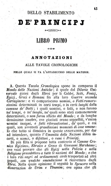 Un classico del pensiero filosofico: Giambattista Vico - Principi di una scienza nuova - Milano 1857