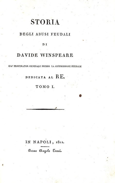 Davide Winspeare - Storia degli abusi feudali - Napoli, Angelo Trani 1811 (rara prima edizione)